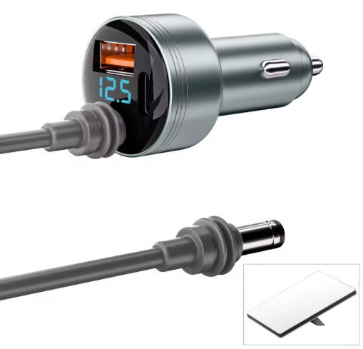Cargador de coche digital, cargador de a bordo con DC 5521 USB-C QC 3.0, 3 puertos, admite carga rápida PD con cable DC 16AWG